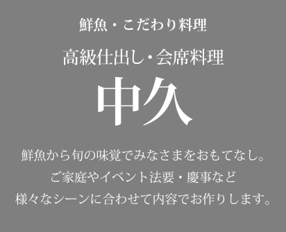 ※季節・内容で金額変更する場合がございます。 ※季節・内容で金額変更する場合がございます。 magurohonponaka@gmail.com 山口県岩国市玖珂町同道5847番地 営業時間 9:00〜18:00 定休日 水曜日 〉HOME 〉こだわり 〉味処 中久亭 〉仕出し 中久 〉専門店 ひろなか